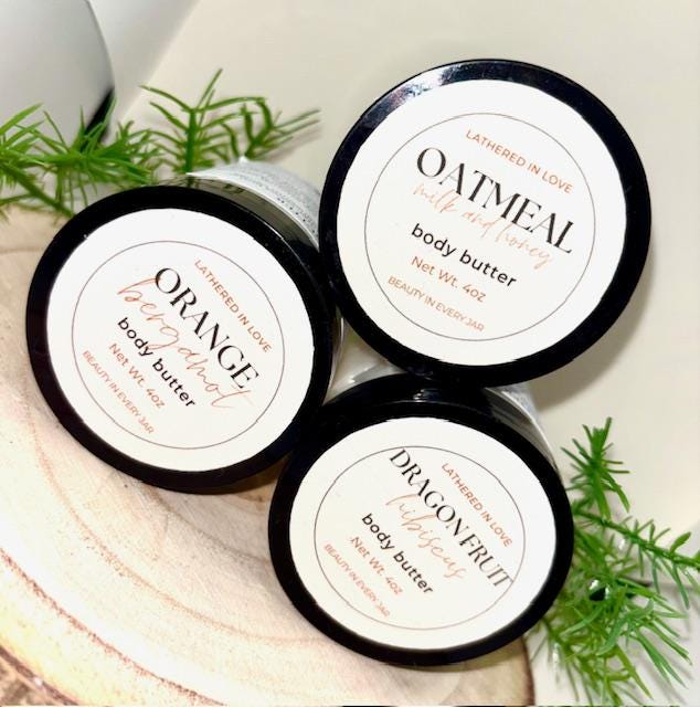 Treat your skin to the luxury it deserves with our handmade Body Butter, available in a variety of scents. This lotion is perfect for everyday use, leaving your skin soft and hydrated.